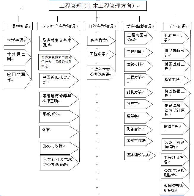 【培养目标】本专业培养德智体全面发展,适应土木工程建设技术与管理服务的需要,掌握与工程管理相关的土木工程技术、管理、经济和法律等基本知识,具备系统性、开放性的专业知识结构,获得建造师、监理工程师、试验检测工程师、工程造价师等所需的基础知识,懂工程经济、善工程管理、会工程技术、实践能力强、综合素质高、富有创新精神和创业能力的复合性应用型高级专门人才。毕业生能够综合运用土木工程技术与管理科学的理论与方法,在交通、建筑行业的施工、试验检测、监理咨询企业以及政府行业管理部门从事土木工程建设管理和工程技术服务工作。