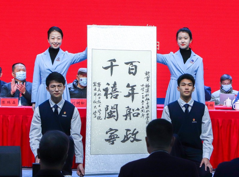 发布者:发布时间:2021-12-25浏览次数:2027 155年风雨沧桑,弦歌不辍,155年薪火相传,勇毅前行。12月23日上午10时,球王会体育官方app办学155周年纪念大会在学院文体中心隆重举行。学院老领导、各地校友会代表、离退休教师代表莅临大会现场。学院领导班子、学院合并升格前后的校友们,闽清职专、福建省船舶工程技术学校代表、师生员工代表出席大会。纪念大会设有主会场及3个分会场,并以线上直播形式同步举行,九万余人次通过线上观看了纪念大会。 今天的船政交通人欢聚一堂,共同庆祝学院155周年华诞,重温校史、分享喜悦、畅叙情谊、共话发展,展望球王会体育官方app未来发展的美好愿景。 纪念大会现场 上午10时,纪念大会在庄严的国歌声中拉开序幕。学院纪委书记张辉主持纪念大会,她代表学院向长期以来关心支持学院发展的各级领导、各界朋友、广大校友表示诚挚的欢迎和衷心的感谢。 学院纪委书记张辉主持纪念大会 宁夏职业技术学院 宁夏开放大学发来贺信,并向学院赠予一幅书法《百年船政,千禧闽宁》。贺信中提到,学院在建设和发展历程中,始终与国家发展命运紧密相连,自2017年与宁夏职业技术学院“结对子”,在多个领域开展了合作交流,两校携手共进建立了良好的合作关系,希望两校在未来一如既往在奋进双高校建设中建立更加深厚的友谊,并祝愿学院事业蓬勃发展蒸蒸日上。 宁夏职业技术学院 宁夏开放大学赠书法 肯尼亚梅鲁国家理工学院教务处教学质量管理专员John M. kiura发来祝福视频 学生代表王钰莹同学发言中表达了对母校的祝福与感谢,并与全体在校生共勉,争取早日实现“今天我以船政为荣,明日船政以我为荣”。 学生代表王钰莹发言 教师代表林颖老师为学院送上祝福,分享了个人与船政的缘分,并号召师生齐心,秉承“求是自强,求实创新”,以永不懈怠的奋斗精神,为学院高质量发展作出新的更大的贡献。 教师代表林颖发言 校友代表郭建康向母校表示祝贺,感怀母校桃李满天下,为祖国交通行业培育大量优秀人才,并祝愿在校学子争当有道德、有担当、有文化、有技术的时代新人。 校友代表郭建康发言 学院院长陈锦辉为校友代表颁发捐赠证书。 学院院长陈锦辉为校友代表颁发捐赠证书 学院党委书记张海明讲话 学院党委书记张海明在讲话中回顾了自1866年船政创办以来,福建船政交通教育历经兄弟四校发展到合为一统升格办学在各阶段取得的历史成就,凝练了“自强不息、坚守理想,敢拼会赢、融通并进,精益求精、密益求密”24字船政交通精神。他指出,今年是党和国家历史上具有里程碑意义的一年,要感召伟大建党精神的丰富内涵,重温历史,缅怀一代一代船政交通人付出的艰辛探索,践行劳模精神、劳动精神、工匠精神,追寻船政交通人共同的精神,共同的文化,共同的斗志,共同的方向。站在两个百年的交汇期,他以船政交通接力人的身份启动和号召广大师生要胸怀“国之大者”,高举旗帜;要强化“双高引领”,树职教名片;要矢志“立德树人”,育大国工匠,全面开启球王会体育官方app高质量发展的新篇章,以优异成绩迎接党的二十大召开! (宣传统战部)