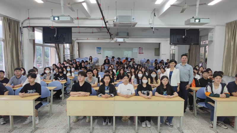 厦门海陆海事服务有限公司副总经理李乐天通过生动有趣的一手资料向同学们介绍了国际邮轮行业的发展历史、邮轮就业的优势、邮轮上各部门的岗位及相关要求等,同时,具体地展示了邮轮内部的工作和生活,引起同学们极大的兴趣。同学们积极与主讲人互动,踊跃提出自己对邮轮岗位及就业的困惑。