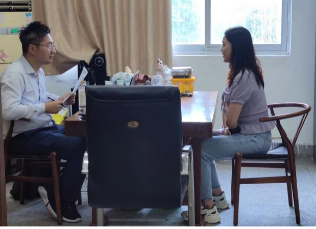宣讲结束后,李乐天经理给有志于从事邮轮服务行业的同学们进行一对一的面试,为即将开始顶岗实习的同学提供面对面的就业指导。