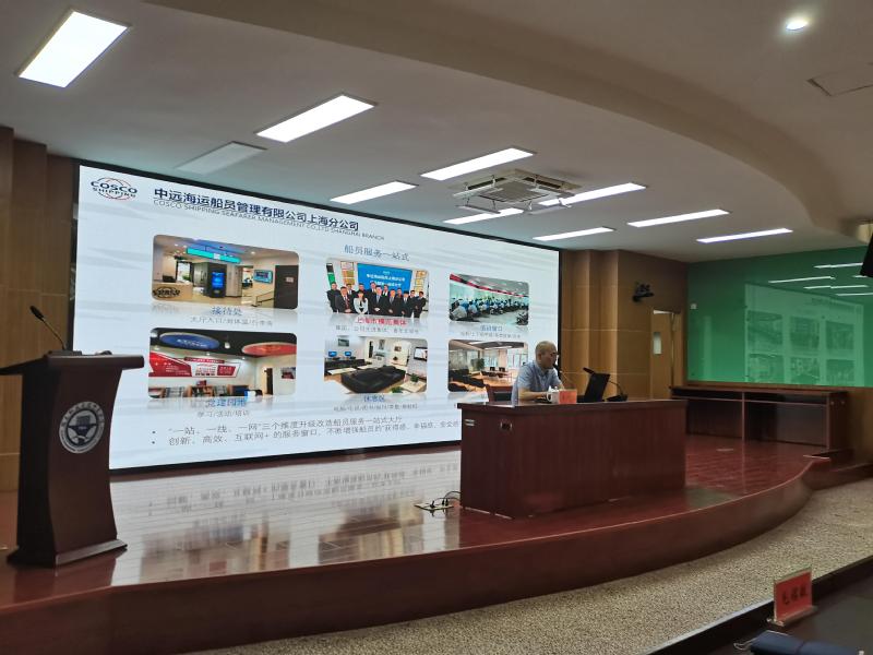为加强高素质船员队伍建设、深化校企合作,6月22日上午,中远海运船员管理有限公司上海分公司王国进书记一行莅临我校。在北区1号楼学术报告厅为我院航海类专业学子做航运企业宣讲会。